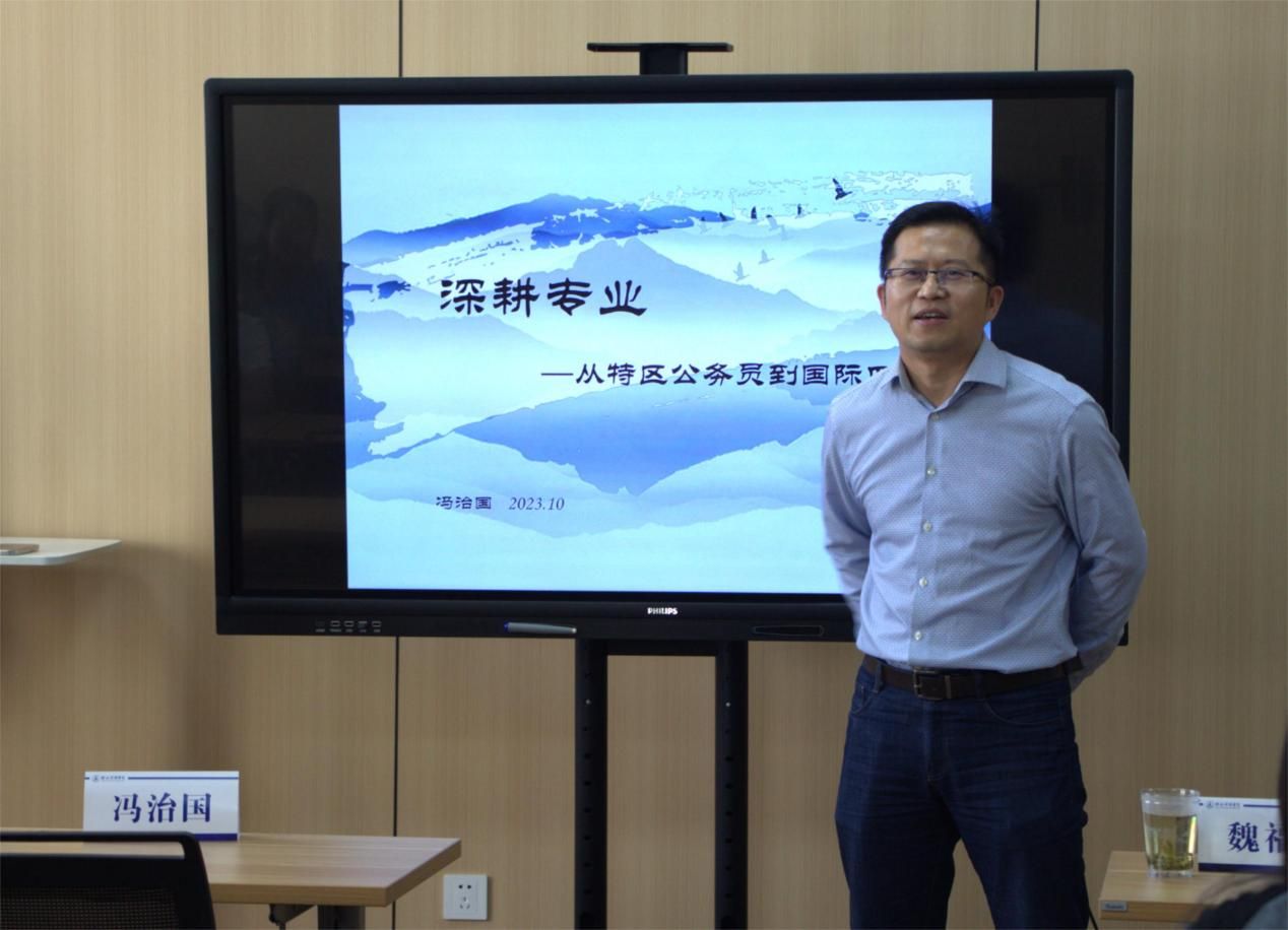 新闻网讯(通讯员:韩睿子 学生通讯员 徐婉婷 摄影 田卓谕)10月18日,财政税务学院特邀税收93级毕业生冯治国进行“深耕专业——从特区公务员到国际四大的职业”主题分享会。出席本次分享会的有财政税务学院副院长魏福成,财政税务学院团委书记、2020级本科生辅导员韩睿子。