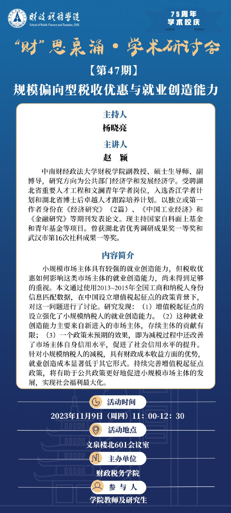75周年学术校庆讲座 | “财”思泉涌·学术研讨会(第47期)