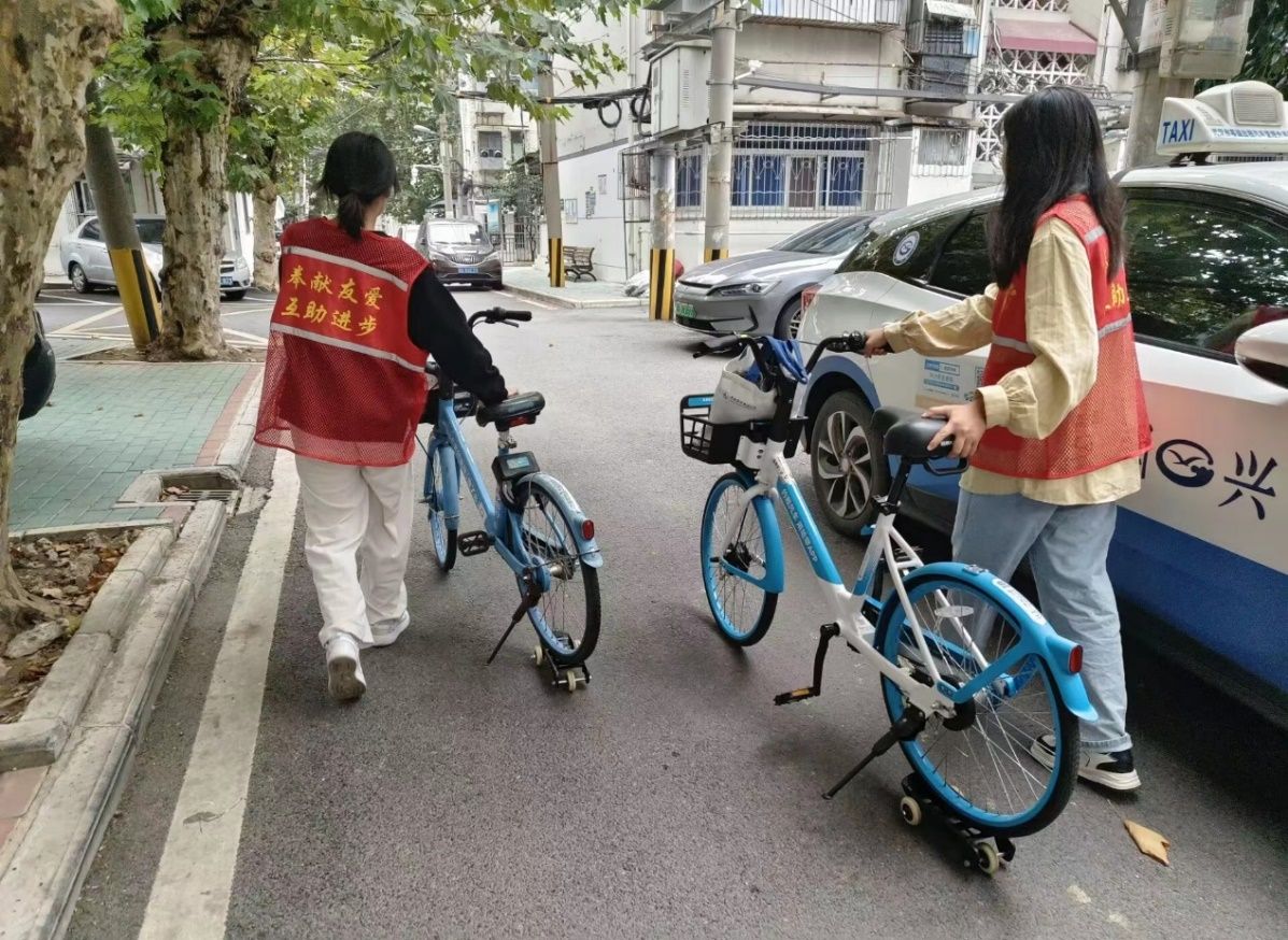 在整理共享单车的活动中,志愿者们大汗淋漓,用着为数不多的车轮支撑板将社区各个角落中未按规定摆放的共享单车挪至共享单车停放区。一辆辆共享单车再次有序地出现在应有的位置。对此,志愿者彭程程表示:“我帮助整理社区内的自行车工作,虽然很累,但是也让我体验到了付出的快乐。我们通过努力为小区整洁贡献了力量,这也是我们作为大学生的社会职责所在。”
