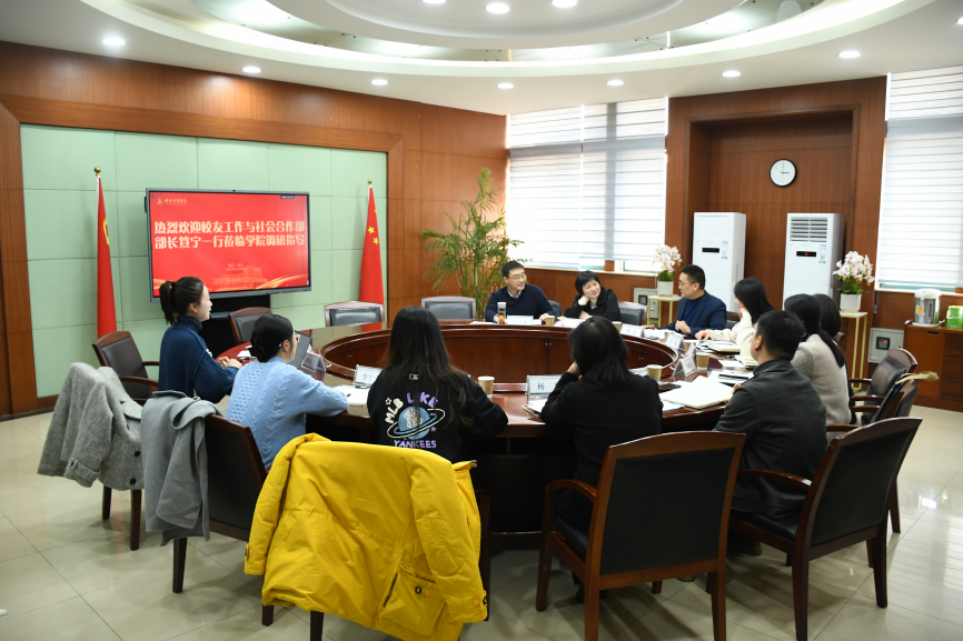 11月28日下午,校友工作与社会合作部部长笪宁一行来我院调研,校友工作与社会合作部副部长万莉、基金办公室主任刘诲、办公室主任张亚星、校友工作专员郭青川以及基金项目主管杨慧、潘俊、李宇宁参加座谈。财政税务学院党委书记袁桂君、党委副书记吴兴华等参加会议。本次会议由财税学院党委书记袁桂君主持。