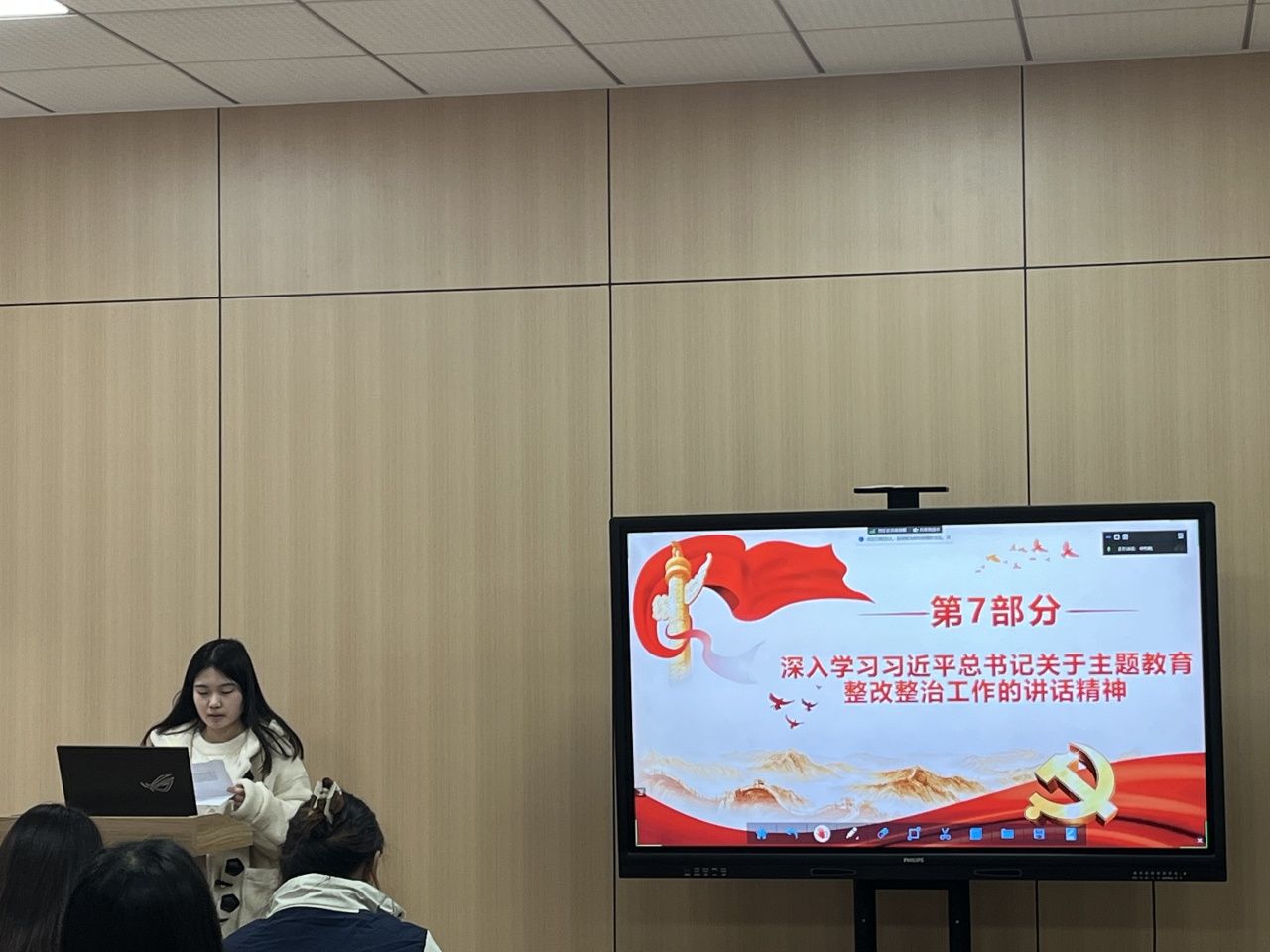 最后,在霍妍君同志的带领下,全体支部成员深入学习了习近平总书记关于主题教育的最新讲话精神。9 月以来,习近平总书记在多个场合就抓好主题教育提出明确要求,强调要把实的要求贯穿主题教育全过程,坚决防止和克服形式主义、官僚主义,实实在在抓好理论学习和调查研究,实实在在检视整改突出问题,实实在在办好惠民利民实事,用实干推动发展、取信于民。同时,各二级党委、各党支部还应按照上级关于开展第一批主题教育整改落实情况“回头看”的要求部署,不断巩固深化整改整治成果,确保主题教育整改整治各项措施不折不扣落到实处,深刻回答好“教育强国,高校何为”的时代课题。