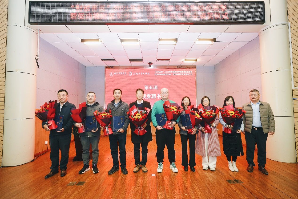 颁奖环节,首先由财政税务学院院长张克中为学科竞赛、财税菁英训练营的指导老师们颁发聘书。