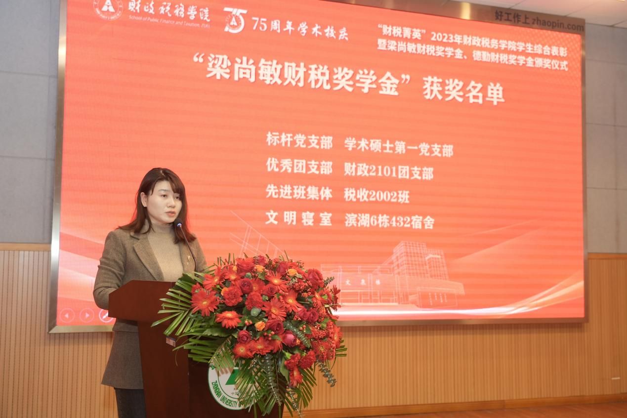为深入学习宣传贯彻党的二十大精神和习近平总书记关于青年工作的重要思想,传承校友榜样精神,汇聚人才培养合力,发挥新时代大学生榜样引领和模范带头作用,展示我院青年学子昂扬向上的精神风貌。12月8日下午,“财税菁英”2023年财政税务学院学生综合表彰暨梁尚敏财税奖学金、德勤财税奖学金颁奖仪式在文潭楼报告厅隆重举行。