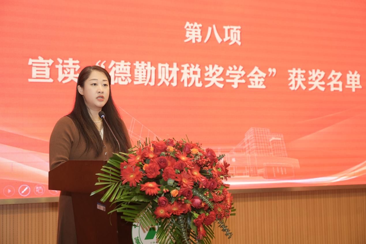 校党委副书记、纪委书记申祖武教授致开幕词。申祖武首先代表学校向长期以来对学校事业发展给予关心和支持的校友、企业、社会各界表示诚挚的感谢,并对辛勤付出的老师们和受到表彰的先进集体和个人表示慰问和祝贺。申祖武高度评价了梁尚敏教授的高尚师德,高度评价了德勤会计师事务所的社会责任担当,高度评价了财政税务学院在人才培养、科学研究、社会服务等方面的高质量发展,并提出了三点殷切期望,希望同学们继续刻苦钻研、勤奋学习,希望教师们锐意进取、开拓创新,希望广大校友和企业家朋友继续关注和支持学校、学院的发展,同心戮力,奋楫笃行,以多种方式助力校院高水平人才培养。