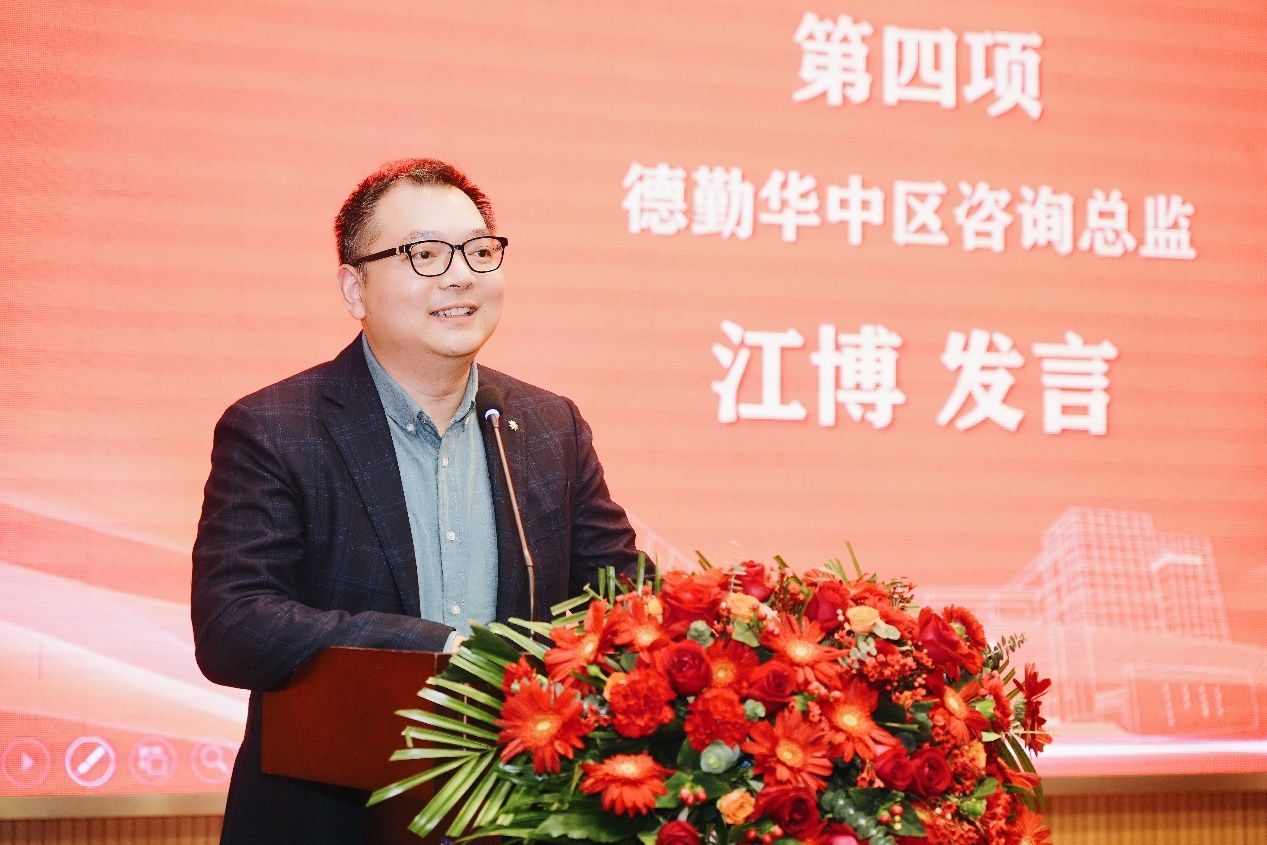 德勤华中区咨询总监江博发言。江博高度认可财政税务学院对学生的培养,并表示,财税学院的学生在学术科研、创新创业和社会实践中展现出了卓越的能力和素质,显示出了对财税领域的热爱和扎实的专业基础。江博对学院学子未来的发展充满信心,并期待他们能够继续发光发热,为财税领域的发展做出更多贡献。