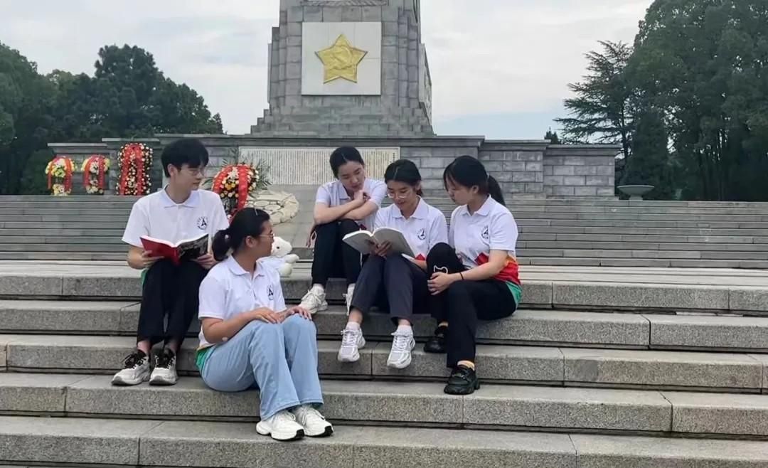 走出桃园,实践队一行怀着崇敬的心情,参观瞻仰了闻一多纪念馆和浠水县三角山红色教育基地。闻一多先生出生于浠水县巴河镇,是我国杰出的诗人、学者、文学家、艺术大师,伟大的爱国主义者,英勇不屈的民主斗士,2009年被评为100位为新中国成立作出贡献的英雄模范人物之一。毛泽东主席曾说:我们应该写闻一多颂,他们表现了我们民族的英雄气概。实践队从武汉启程去浠水的路途中,队员们就在车上热烈地讨论并追忆着闻一多先生的感人事迹和卓越贡献,并决定一起学习由闻一多先生作词的《七子之歌——澳门》。歌词寥寥数语却饱含了闻一多先生对国土沦失、民族危亡的愤慨和对祖国母亲的深沉眷恋,一曲未毕,队员们已是眼眶湿润,《七子之歌》也伴随着此次实践全程,无数次被队员们情不自禁的哼唱。在闻一多先生雕像前,实践队全体师生又一次深情合唱了《七子之歌》,以此表达对闻一多先生追求祖国统一、自由民主、不惧牺牲精神的敬仰;在三角山红色教育基地红二十八军游击根据地纪念碑下,实践队师生一起合唱校歌,致敬红二十八军在三角山鄂豫皖苏区游击根据地屡遭敌人“围剿”“清剿”的情况下,誓死不屈捍卫大别山革命红旗的英雄主义精神,于和平繁荣中回望过往峥嵘岁月的壮烈。
