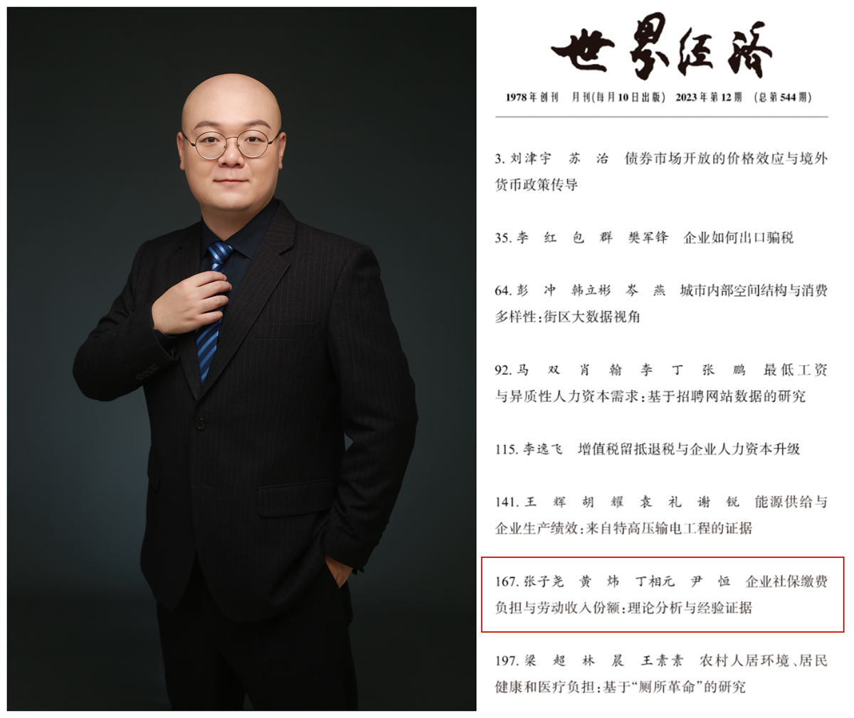 近日,我院张子尧老师及其合作者的研究成果“企业社保缴费负担与劳动收入份额:理论分析与经验证据”在国内权威期刊《世界经济》2023年第12期正式发表。