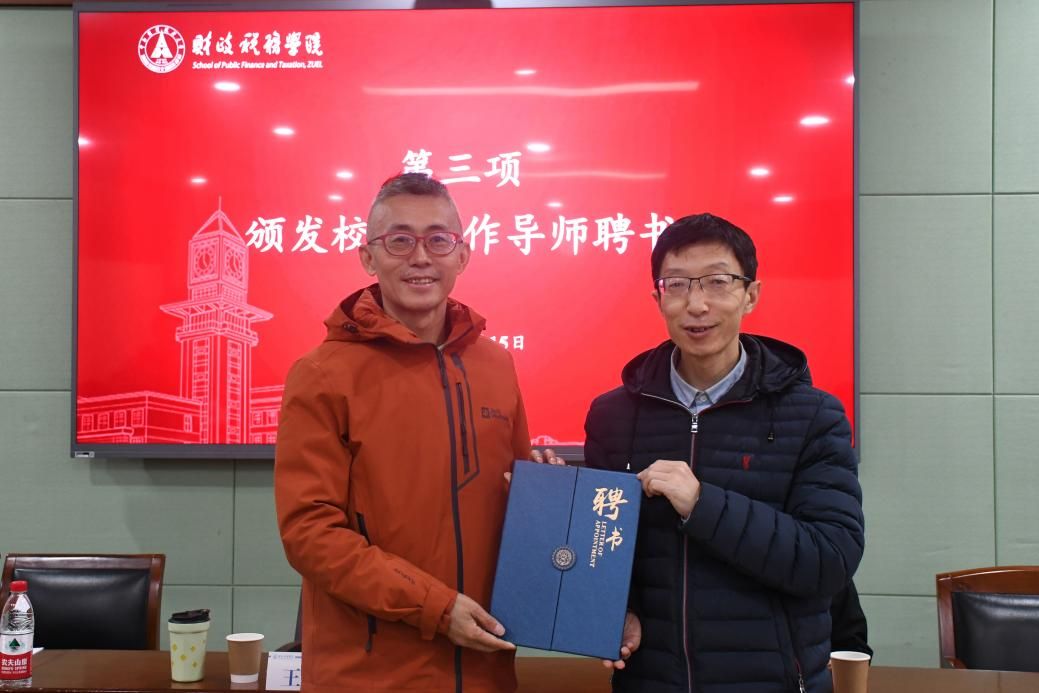 此次研讨会邀请到了“中国财税浪子”王骏老师担任主讲人,财政税务学院税务系副主任王宝顺担任主持,副院长薛钢,副院长魏福成,税务专硕项目主任解洪涛一并出席,授予王骏老师为财政税务学院税务专业合作硕士生指导老师。财政税务学院、法学院相关老师学生,以及财税领域实务专家共计六十余人参与本次研讨会。