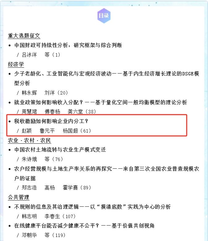 近日,我院赵颖、鲁元平两位教师及其合作者的研究成果“税收激励如何影响企业内分工?”在顶级期刊《管理世界》2024年第1期正式发表。