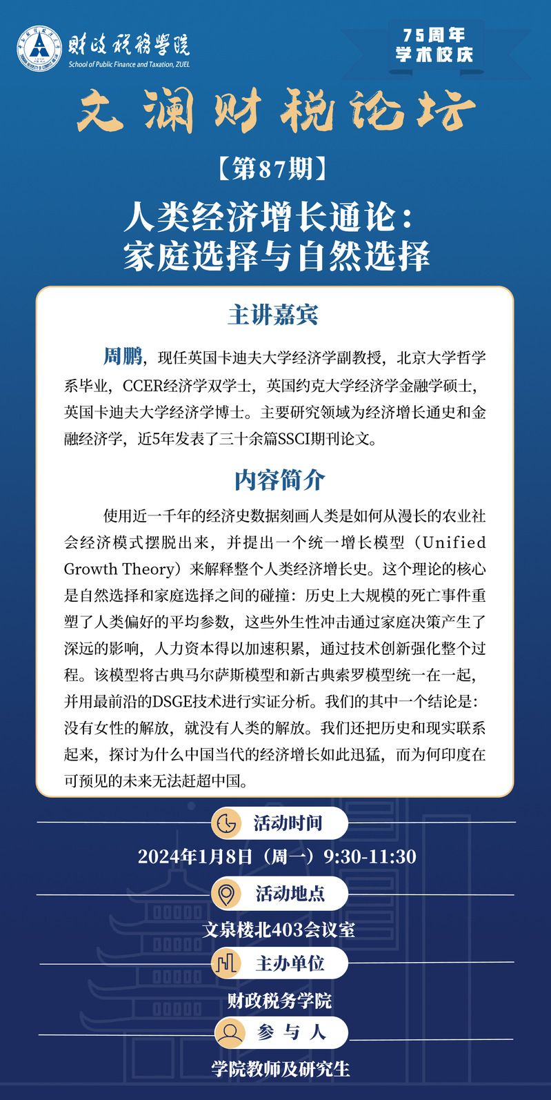 75周年学术校庆讲座 | 文澜财税论坛(第87期):英国卡迪夫大学周鹏副教授