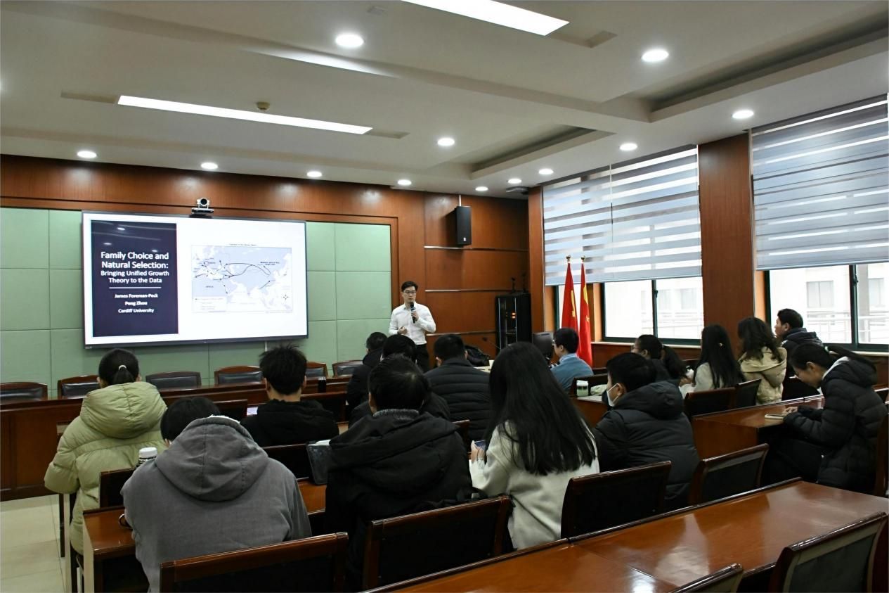 2024年1月8日上午,文澜财税论坛(第87期)在文泉北403会议室顺利举行。本次讲座邀请了英国卡迪夫大学经济学周鹏副教授做题为“人类经济增长通论:家庭选择与自然选择”的学术报告。讲座由杨晓亮老师主持,学院部分教师和研究生共同参与了本次学术交流活动。