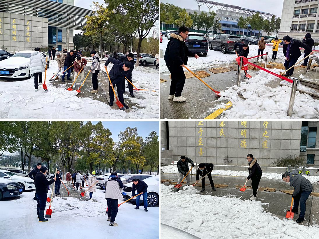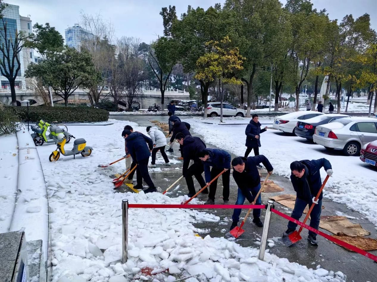 随着近日武汉突如其来的降雪冻雨天气,中南大校园内道路积雪积冰,给师生的出行带来了较大的困难。为了迎接新学期的到来,保障师生们的安全出行,2月24日中午,财政税务学院的党员师生们自发组织起来,拿起铲雪工具,对文泉楼广场周边的积雪和积冰进行了全面的清理。