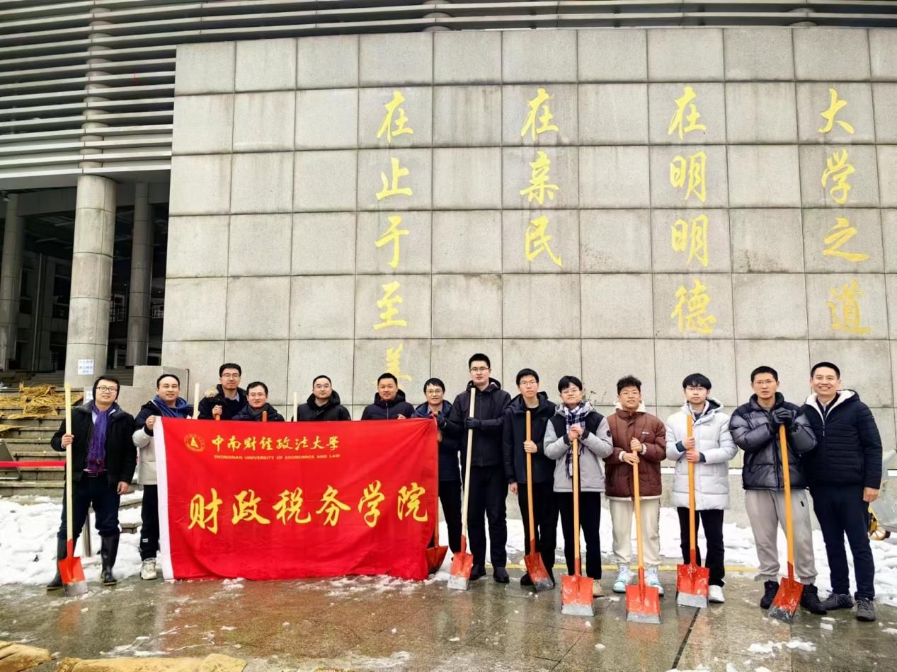 虽然寒风凛冽,但大家的热情丝毫未减,干劲十足。党员师生们互相配合,用财税人的热情和汗水驱走了冬日的寒冷,也“融化”了道路上的冰雪。