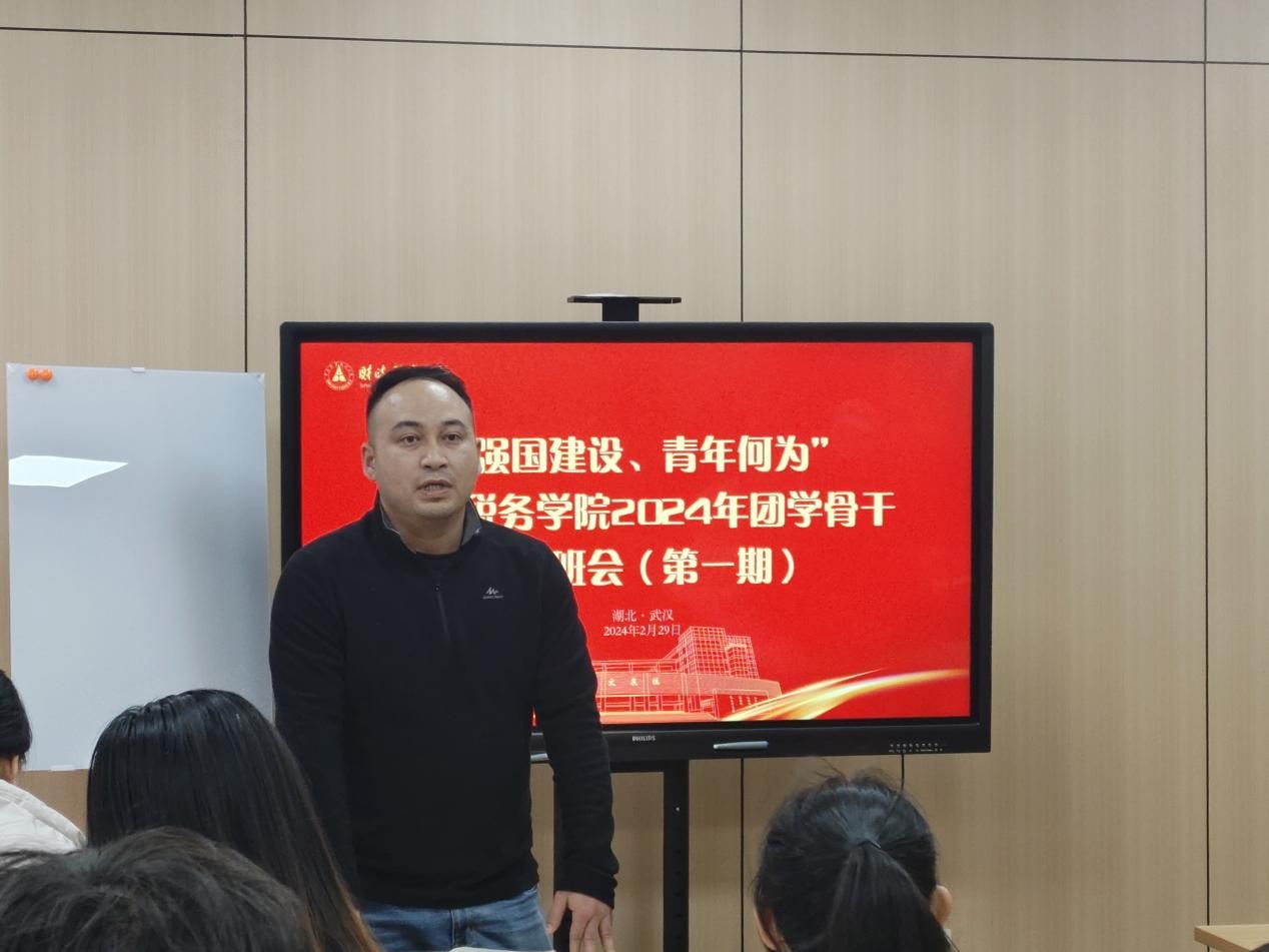 2024年2月29日下午,“强国建设、青年何为”——财政税务学院2024年团学骨干主题班会(第一期)在南湖校区文泉北503室顺利召开。参加本次活动的有财政税务学院党委副书记吴兴华,院团委书记、本科生辅导员木拉提,院团委副书记、研究生辅导员钟唯以及学院团委、研究生会、学生会、志愿者协会、科研中心等各学生组织主要负责人。