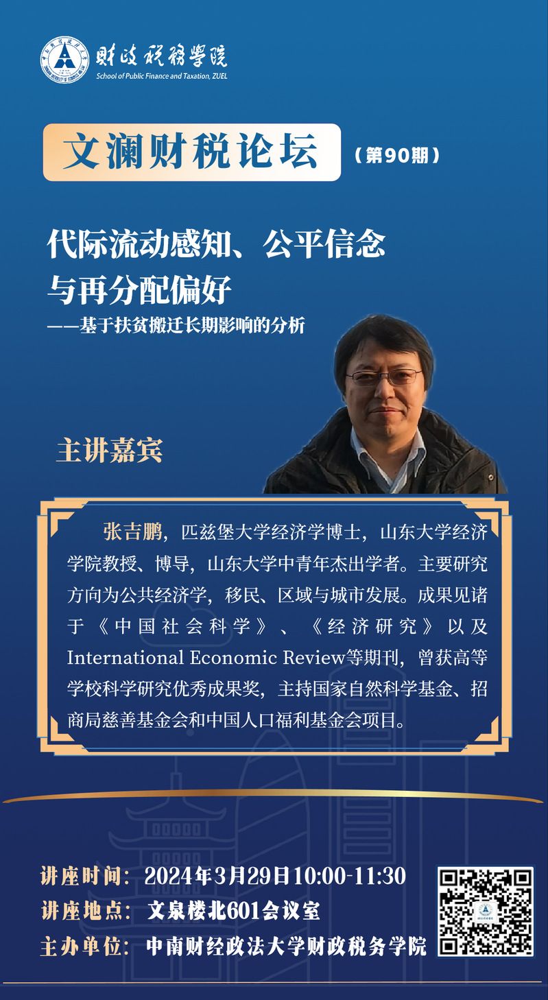 文澜财税论坛(第90期)| 山东大学经济学院张吉鹏教授