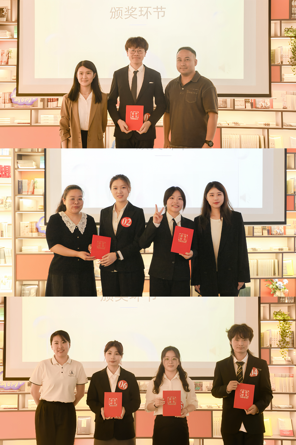 最后进入颁奖环节。根据两轮比赛的综合得分,陈硕同学获得一等奖,解可怡同学和谢可同学获得二等奖,许兆泉、李莉和赖旖婕三位同学获得三等奖。