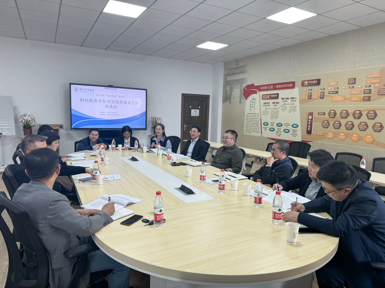 为加快建设高质量教育体系,提高人才自主培养质量,促进“招生-培养-就业”深度有效联动,10月23日16时,学院于文泉北601会议室召开第27期“财税有约”暨学院招生培养就业工作座谈会。校党委学生工作部部长王前哨、就业指导服务中心主任温习、党委学生工作部副部长石凌、教务部副部长杜兴洋、就业指导服务中心副主任贾晓及相关部门科室负责人参加座谈会,财政税务学院院长张克中、党委书记袁桂君、副院长魏福成、党委副书记吴兴华及学院教师代表、相关科室负责人参加会议。会议由王前哨主持。