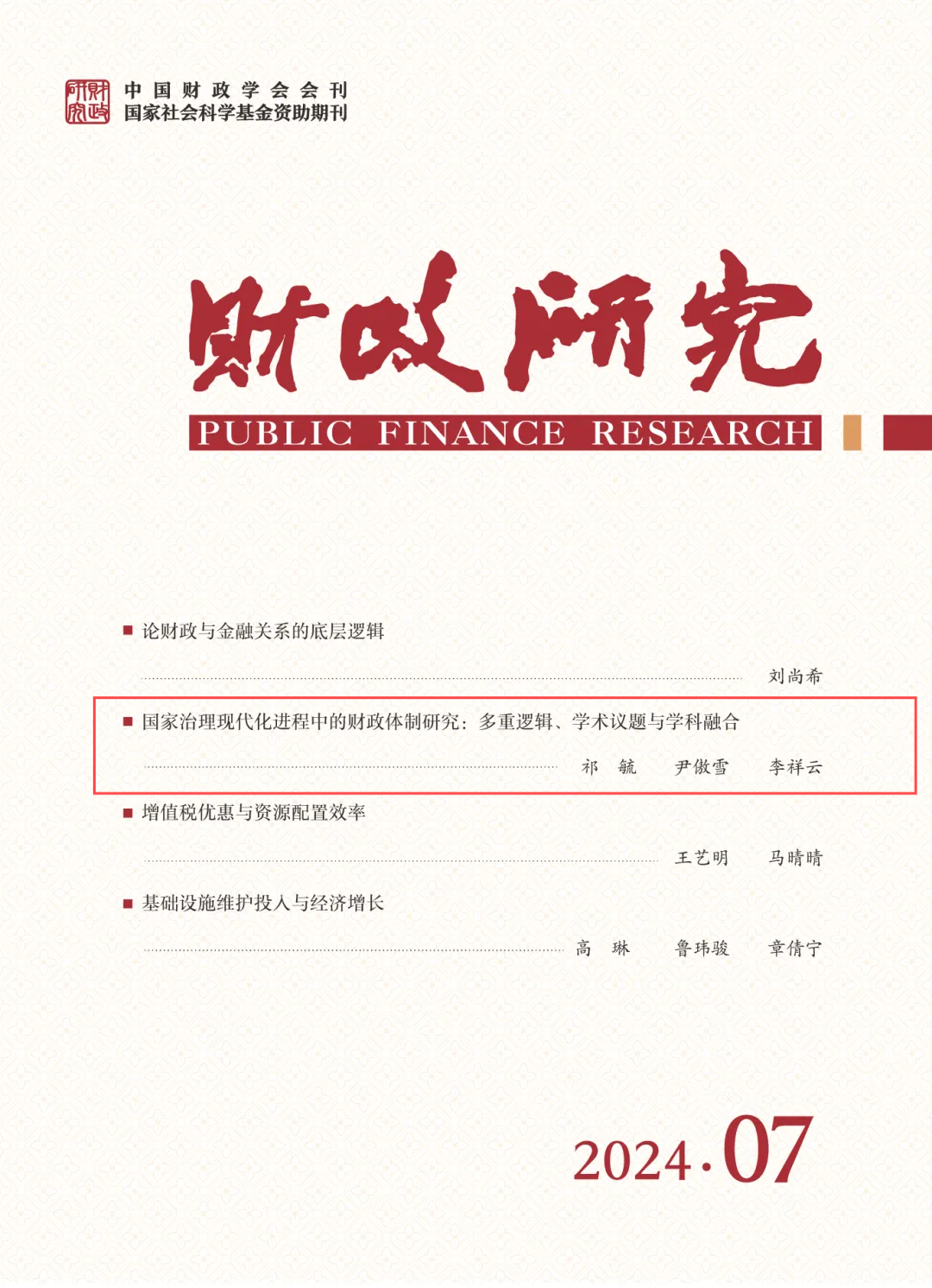 【学术期刊】《财政研究》,2024年第7期。