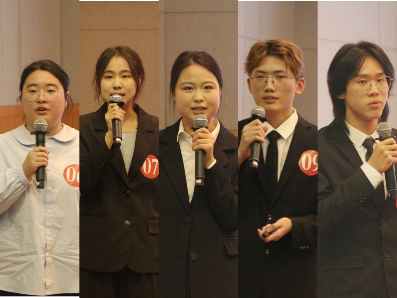 随后,决赛正式开始。比赛共分为两个环节,第一环节为“群英对决”。在这一环节中,选手们首先采取灵活的形式全方面、多角度地介绍自己,随后依次抽取题目作答。选手们随机应变,从当下实际出发分析题目,阐述自己的想法,表现十分精彩。