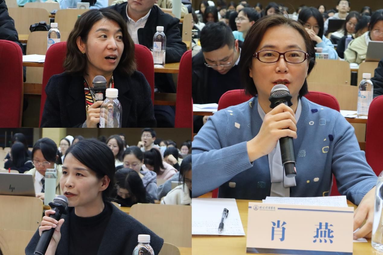 两个环节的比赛之后,评委老师们对整场比赛进行了认真细致的点评。肖燕老师充分肯定了本次比赛中选手们的出色表现,并对活动的统筹组织给予了高度评价,同时鼓励各位选手结合当下实际,以国际视角看待问题并从细节做起,在自己的领域发光发热。任丹老师指出本次比赛有“四好”,即题目好、学生表现好、助演表现好、示范作用好,并提醒参赛选手注意自我介绍环节存在的问题。