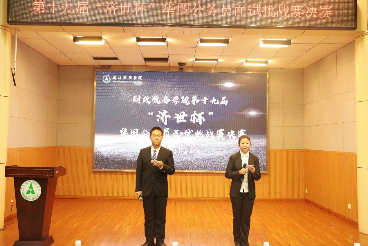 11月20日晚,财政税务学院第十九届“济世杯”华图公务员面试挑战赛决赛于文潭楼一楼招聘厅顺利举行。出席本次大赛的领导和嘉宾有:国家税务总局湖北省税务局第三税务分局局长肖燕,华中农业大学外国语学院党委副书记、全球职业生涯规划师、生涯教练任丹,米兰电竞·(中国区)就业指导服务中心副主任贾晓,财政税务学院党委书记袁桂君、党委副书记杨少同,华图教育湖北分校常务副校长、助理副总裁欧海,华图教育华中师资中心院长顾晨,华图教育湖北分校市场总监余栋,华图教育湖北分校教师项目总监王红发,华图教育武汉地市分校校长张成以及财政税务学院学生工作办公室的各位老师。