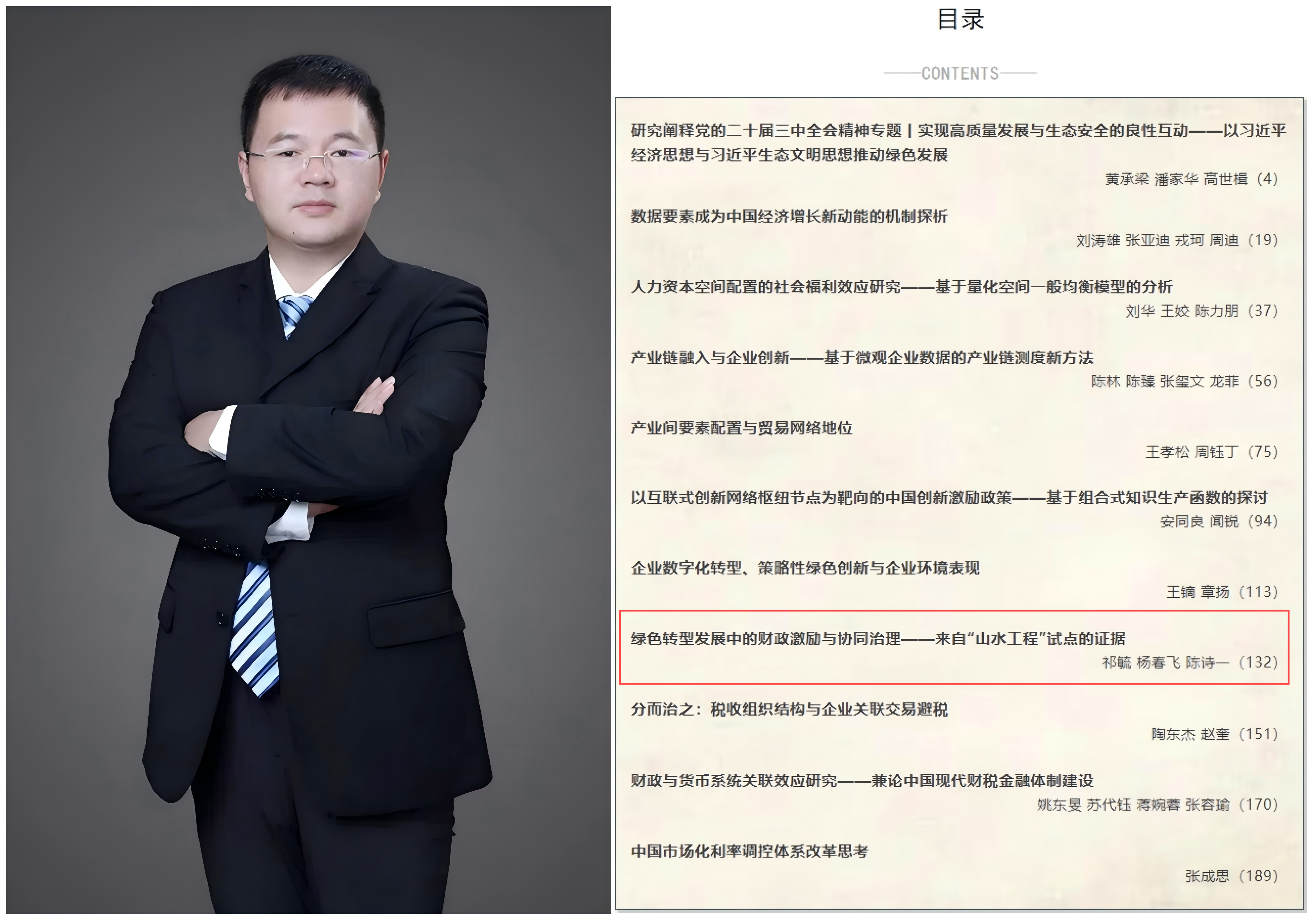 我院祁毓教授及其合作者的研究成果“绿色转型发展中的财政激励与协同治理——来自“山水工程”试点的证据”在顶级期刊《经济研究》2024年第10期正式发表。