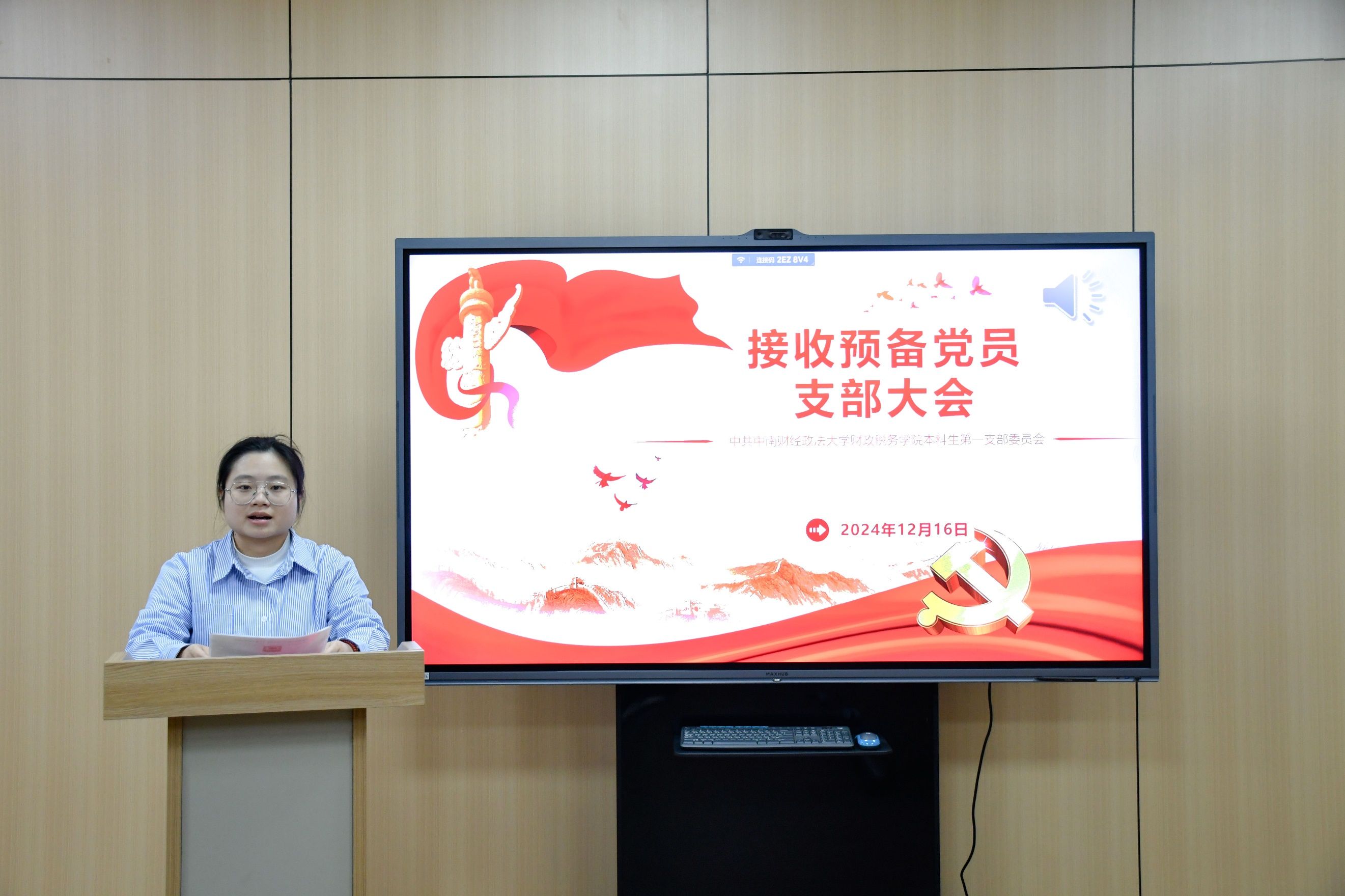 12月16日下午,财政税务学院本科生第一党支部于文泉楼北503会议室召开支部党员大会讨论接收预备党员及预备党员转正事宜。本次会议由支部副书记钱亭熹同志主持。