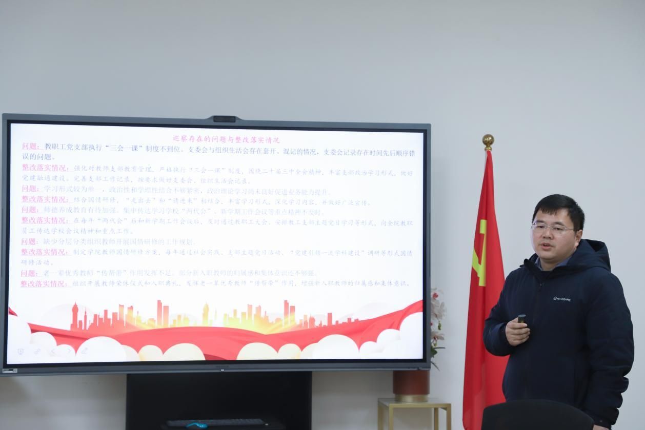 祁毓结合支部党员在严格遵守政治纪律和政治规矩、遵守规章制度以及支部在加强党性教育等方面,对支部存在的问题进行了深刻对照检查,并从创新融通机制、传承红色基因、助力学科建设三方面做支部工作总结和下一年度工作计划。财政系党支部将坚持“党建引领”蓝图,按照新时代高校党建基本遵循,发挥好教师党支部的战斗堡垒作用和教师党员的先锋模范作用。