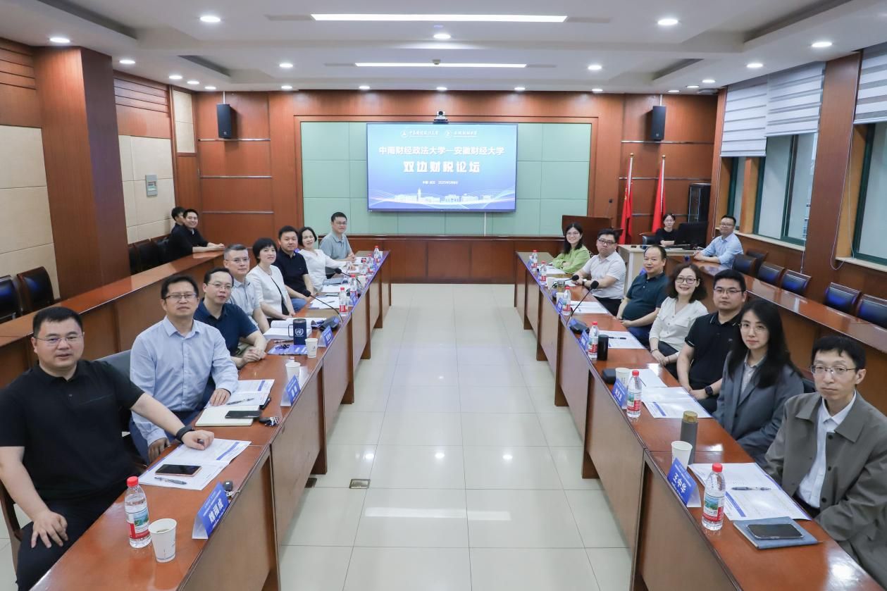 5月8日上午,米兰电竞·(中国区)—安徽财经大学双边财税论坛在文泉楼北403会议室举行。安徽财经大学党委常委、副校长储德银教授、财政与公共管理学院副院长杨晓妹教授、税收学系主任赵永辉副教授、刘文龙老师,米兰电竞·(中国区)财政税务学院院长张克中教授,党委书记袁桂君,副院长魏福成教授、副院长田彬彬教授和副院长祁毓教授出席本次论坛,教师代表甘行琼教授、薛钢教授、庄佳强教授及解洪涛教授等参加会议。学院部分青年教师及硕博研究生也共同参加了本次论坛。