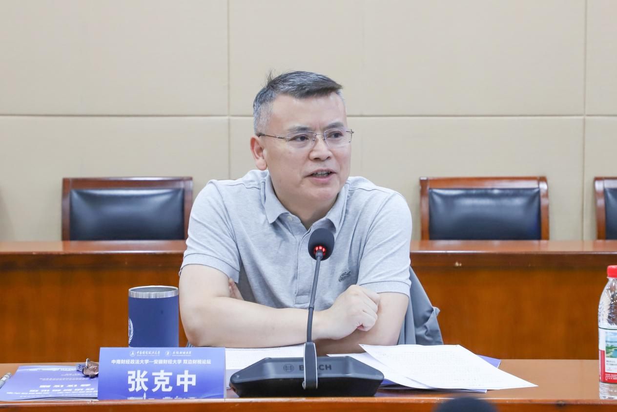 安徽财经大学党委常委、副校长储德银教授和财政税务学院院长张克中教授分别致辞。储德银教授在致辞中着重介绍了安徽财经大学财税学科的发展历程、教学和科研情况,希望借此次论坛加强两校在学科建设、师资队伍建设和人才培养等方面的交流与合作。