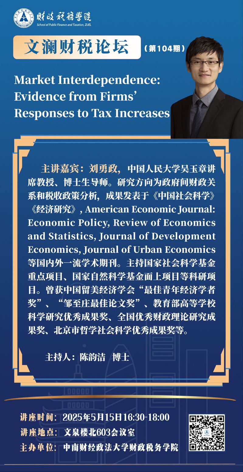 文澜财税论坛(第104期):中国人民大学刘勇政教授