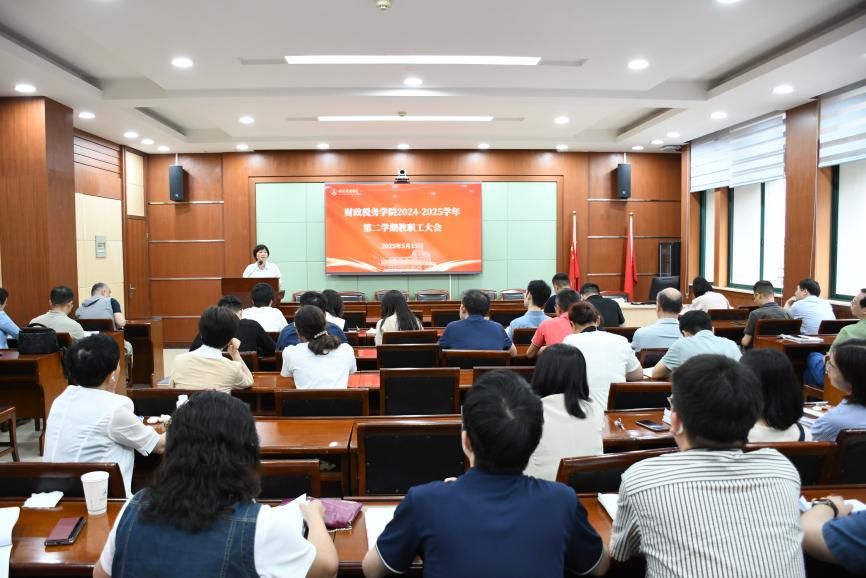 5月15日下午,财政税务学院于文泉北403会议室召开全院教职工大会。财政税务学院领导班子成员及全体教职工参加会议,会议由学院党委书记袁桂君主持。