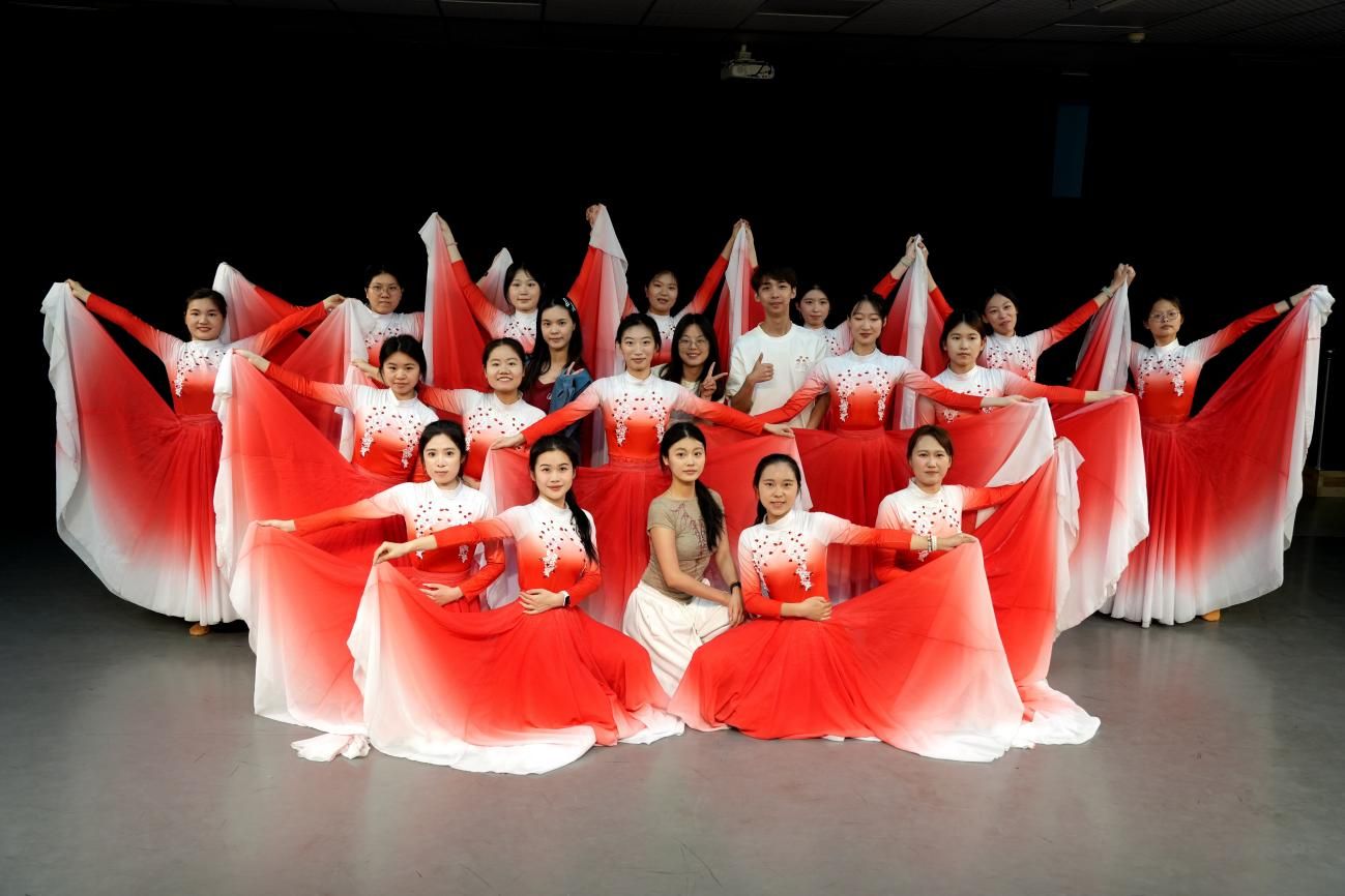 荣誉的背后是汗水的积淀。财税研究生学子们从零基础起步,利用午休与晚间课余时间开展训练。随着赛期临近,训练强度逐步增至每日五六个小时,磨平的舞鞋底和浸透汗水的练功服见证着他们的付出。面对高强度的旋转跳跃和肌肉酸痛,队员们用“激将法”相互打气鼓励,每晚在微信群复盘、调整动作,那些红肿的膝盖与破皮的舞鞋,最终都化作整齐划一的动作绽放在掌声中,经过两个月的高强度训练,财税学子的精彩演绎赢得校内外专业评审以及全场师生的一致认可。