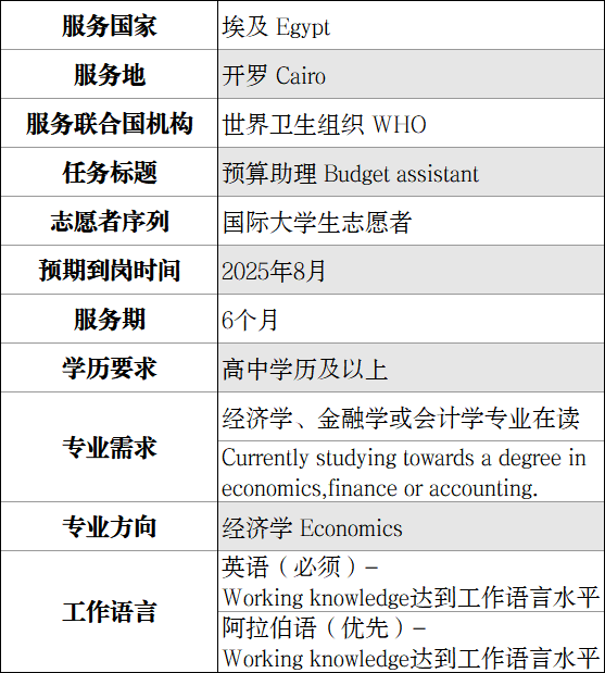 “中国青年志愿者海外服务计划——服务联合国机构项目”是经团中央书记处批准,中国青年志愿者协会与联合国志愿人员组织共同组织实施的培养高素质国际化青年人才的重要项目,为进一步拓展广大青年志愿者参与国际交流的渠道,培养高素质的国际化青年人才。现第五批(2025-2026年度)招募工作已启动,现就财政税务学院志愿者招募工作通知如下: