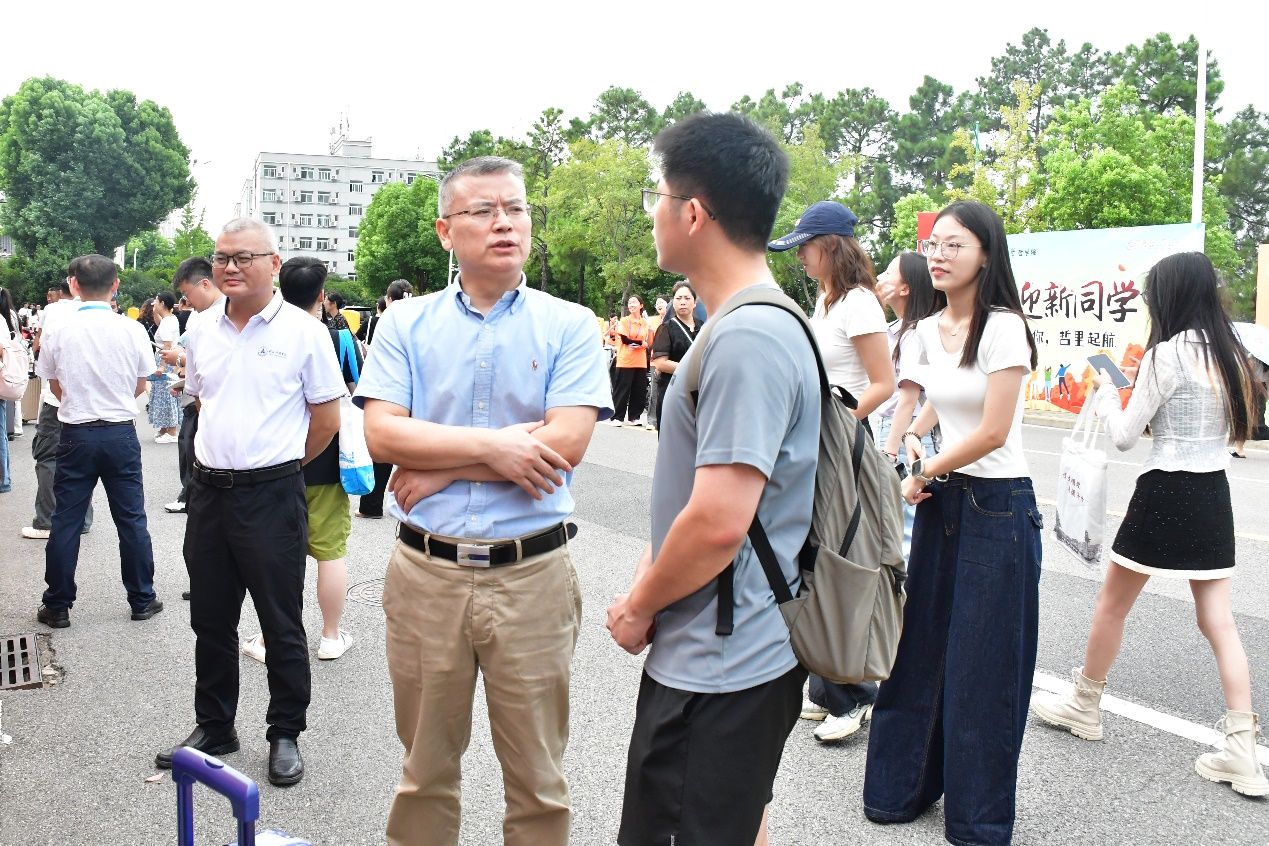 财政税务学院院长张克中,党委书记徐警武,党委副书记杨少同,副院长田彬彬、祁毓也来到了学院迎新点,现场指导迎新工作,与同学们亲切交流,关心他们的学习与生活,并为新生们送上祝福。领导们的到来不仅让新同学们感受到浓浓的关怀与温暖,也为整个迎新工作注入了强大的信心和力量。