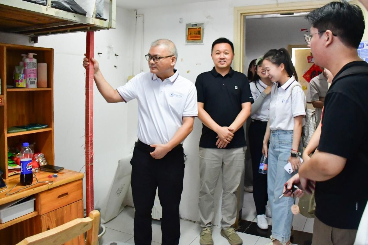 9月6日下午,学院领导、辅导员及志愿者代表分别前往首义校区33号楼、39号楼,南湖校区环湖6栋、环湖9栋新生宿舍,开展“暖心走访”活动。走访过程中,党委书记徐警武询问新生“家是哪里的呀”“来武汉这边能不能适应呀”,句句之中尽显关怀。徐书记仔细查看了各寝室的住宿环境,倾听他们的需求与建议,并嘱咐同学们互相关心、尽快融入新集体。在交流中,学院领导老师鼓励同学们尽早规划大学生活,注重身心健康发展,以积极饱满的精神状态迎接新的成长阶段。