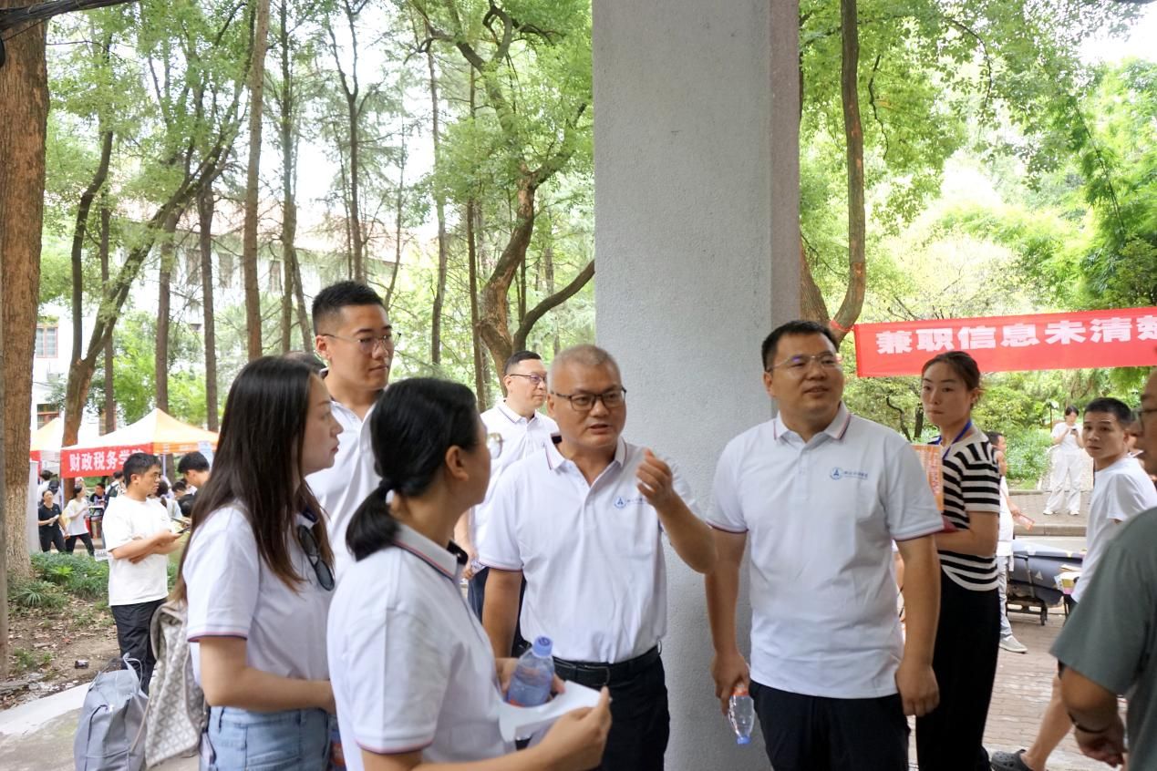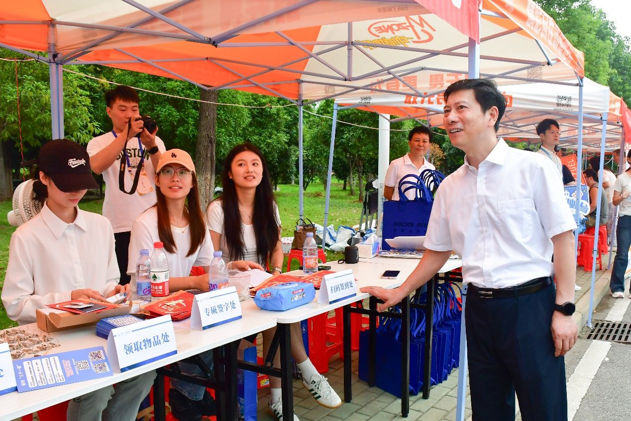 迎新现场处处彰显着校院两级对新生的重视与关怀。当天上午,学校领导在相关职能部门负责人的陪同下,先后走访南湖、首义两校区的财政税务学院迎新点,询问迎新流程、新生报到进度及服务保障情况,亲切慰问迎新工作人员与志愿者。