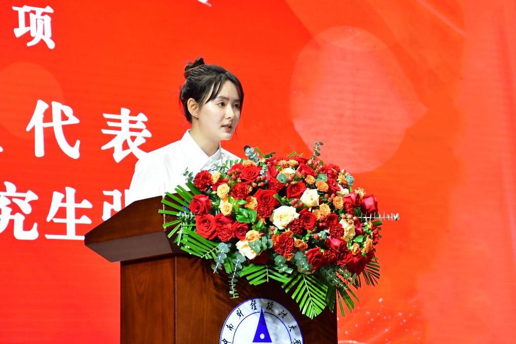 2023级博士生张欢作为在校生代表上台发言。张欢结合自身五年中南大求学经历,分享了三点心得:一是要拥抱未知、敢于尝试,主动学习人工智能等新兴工具,多参与各类实践活动,不必过早设限,以勇敢探索把握机遇;二是需保持好奇、学会思考,不仅要掌握专业知识,更要探寻背后逻辑,善用学院各类学习平台,培养独立思维以应对变化;三是要笃定信念、勤勉坚持,科研学习需日积月累,勤奋坚持是行稳致远的关键。