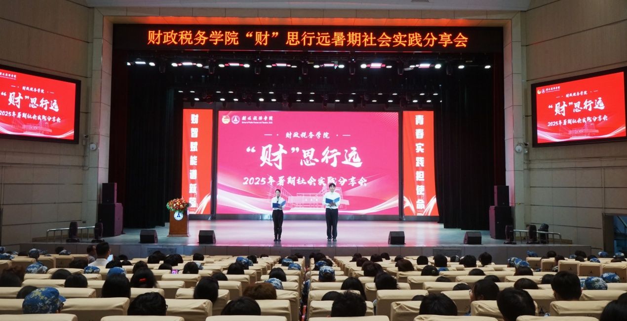 9月16日上午,财政税务学院“财”思行远2025年暑期社会实践分享会在南湖会堂顺利举办。财政税务学院党委副书记杨少同,院团委副书记、社会实践队指导教师李琼副教授,学院学生工作办公室全体辅导员老师,各社会实践队学生代表以及2025级全体新生参与了本次分享会。
