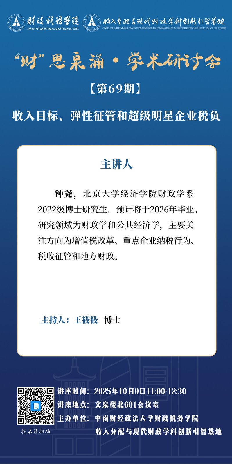 【讲座预告】“财”思泉涌·学术研讨会(第69期)