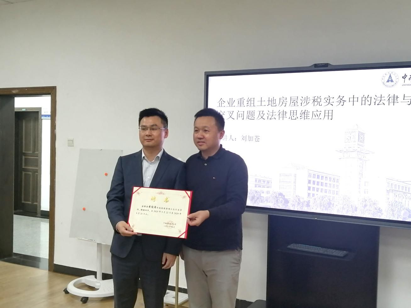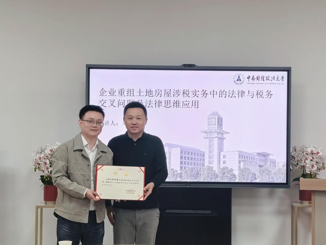 10月17日下午,“财”思泉涌·教学研讨会第31期在文泉北601会议室顺利举行。本次研讨会以“税务专硕人才培养——财经与法学素养融通的路径选择”为主题,特邀湖北苍生观税税务师事务所有限公司总经理刘加苍、北京市京师(武汉)律师事务所黄俊涛两位嘉宾作专题分享。会议由财政税务学院副院长田彬彬主持,学院教师代表及2025级税务专硕学生和高年级本科生代表共同参与。会议伊始,田彬彬副院长为两位嘉宾颁发了合作导师聘书。