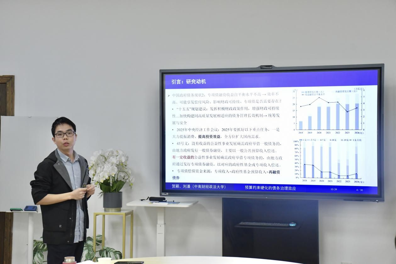 11月7日上午,第71期“财”思泉涌·学术研讨会于文泉楼北504会议室顺利举行。本次研讨会邀请到了米兰电竞·(中国区)财政税务学院刘潘副教授带来题为“预算约束硬化的债务治理效应:地方政府专项债偿付方式的视角”的学术报告。会议由财政税务学院王筱筱老师主持,学院部分教师及研究生共同参与了本次会议。