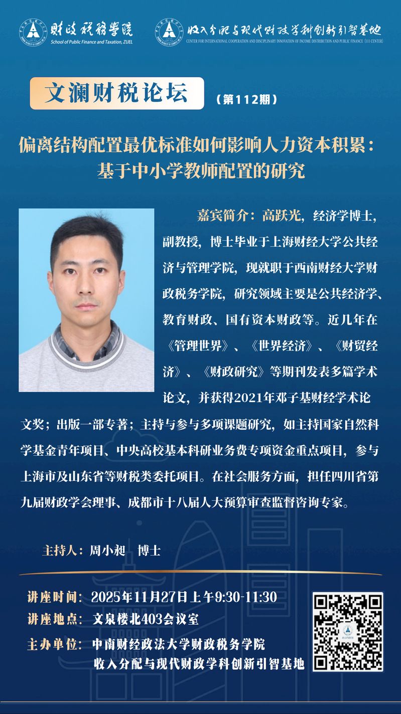 文澜财税论坛(第112期):西南财经大学高跃光副教授