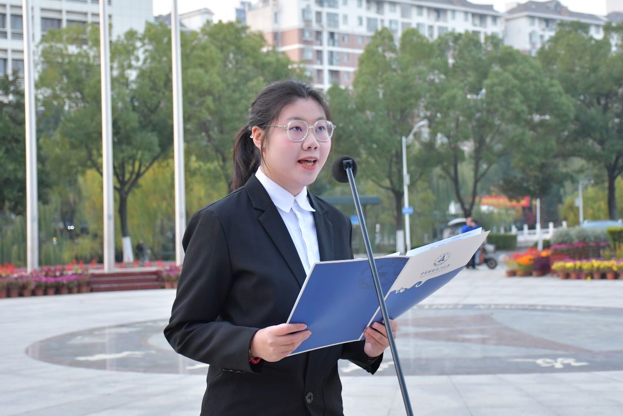 宣誓环节结束后,青年学子结合自身经历,讲述青春故事,传递责任担当。第十九届“挑战杯”全国一等奖获奖团队成员、2022级本科生霍婷钰在国旗下讲话中回顾了自己在“十四五”期间的大学经历:从初入校园的探索,到投身“大创”“挑战杯”等科创竞赛并获全国一等奖,再到凭借三年努力获得保研资格、选择留校深造,以实际行动践行中南大“博文明理 厚德济世”的底蕴。她结合“十五五”规划展望未来,鼓励同学们在日常学习中拓宽视野、明理笃行,同时找准自身方向,提升综合能力,在时代浪潮中定位个人成长坐标,与国家发展同频共振。
