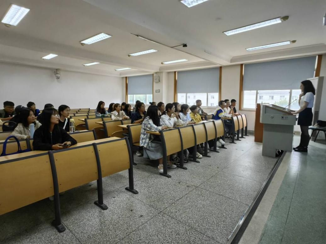 会议伊始,马媛媛老师向同学们介绍了自己,通过她读书、留学和日常生活的片段,同学们对老师有了了解和认识。之后她又站在同学们的角度,询问大家想要了解的问题并进行解答。同学们认真听讲,积极回应,拉近师生距离。