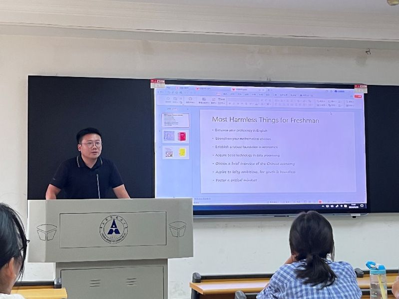 见面会开始,万老师首先向各位新生做了简要的自我介绍。随后,万老师从学习方式的转变、财政学和税务学的专业基础、实践技能的要求、批判性思维的培养、树立远大理想等方面,跟各位新生分享了大学期间学习和生活的经验。万千告诉各位新生作为财政学、税务学专业的学生,必须要打好经济学和数理基础,了解中国经济,掌握好外语,养成独立思考和分析问题的能力,能够熟练地操作数据分析软件。