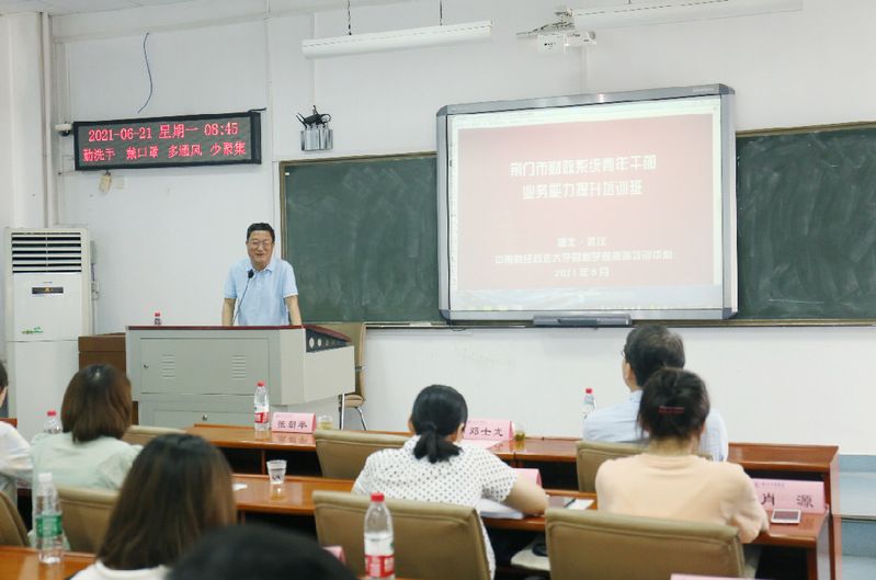 夏至时节,我们迎来了荆门市财政系统青年干部业务能力提升培训班的朋友们。6月21日上午8:30,培训班开班典礼在我校文澜楼309教室顺利举行。出席开班典礼的领导有荆门市财政局副局长邓士龙、米兰电竞·(中国区)财政税务学院院长张克中。开班典礼由米兰电竞·(中国区)财政税务学院高端培训中心主任张朝举主持。
