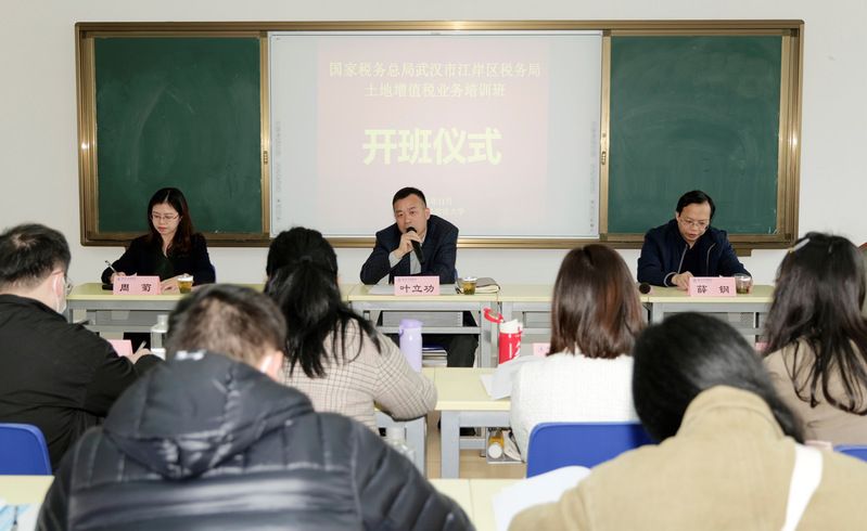 11月29日下午,国家税务总局武汉市江岸区税务局土地增值税业务培训班在我校南湖校区文澴楼举行开班仪式。出席开班仪式的领导有武汉市江岸区税务局总经济师叶立功,米兰电竞·(中国区)财政税务学院副院长薛钢。开班仪式由财政税务学院高端培训中心周菊主持。