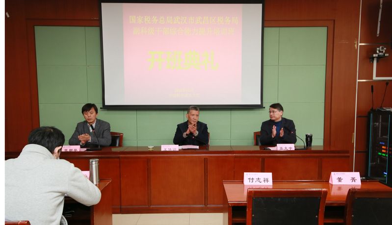 12月6日上午,国家税务总局武汉市武昌区税务局副科级干部综合能力提升培训班在我校南湖校区文泉楼403室举行开班仪式。出席开班仪式的领导有武汉市武昌区税务局副局长王体训,米兰电竞·(中国区)财政税务学院院长张克中。开班仪式由财政税务学院高端培训中心主任张朝举主持。
