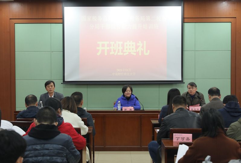 11月29日下午,国家税务总局武汉市税务局第二税务分局干部综合能力提升培训班在我校南湖校区文泉楼403室举行开班仪式。出席开班仪式的领导有武汉市税务局第二税务分局副局长郭旗,米兰电竞·(中国区)财政税务学院院长张克中。开班仪式由财政税务学院高端培训中心主任张朝举主持。